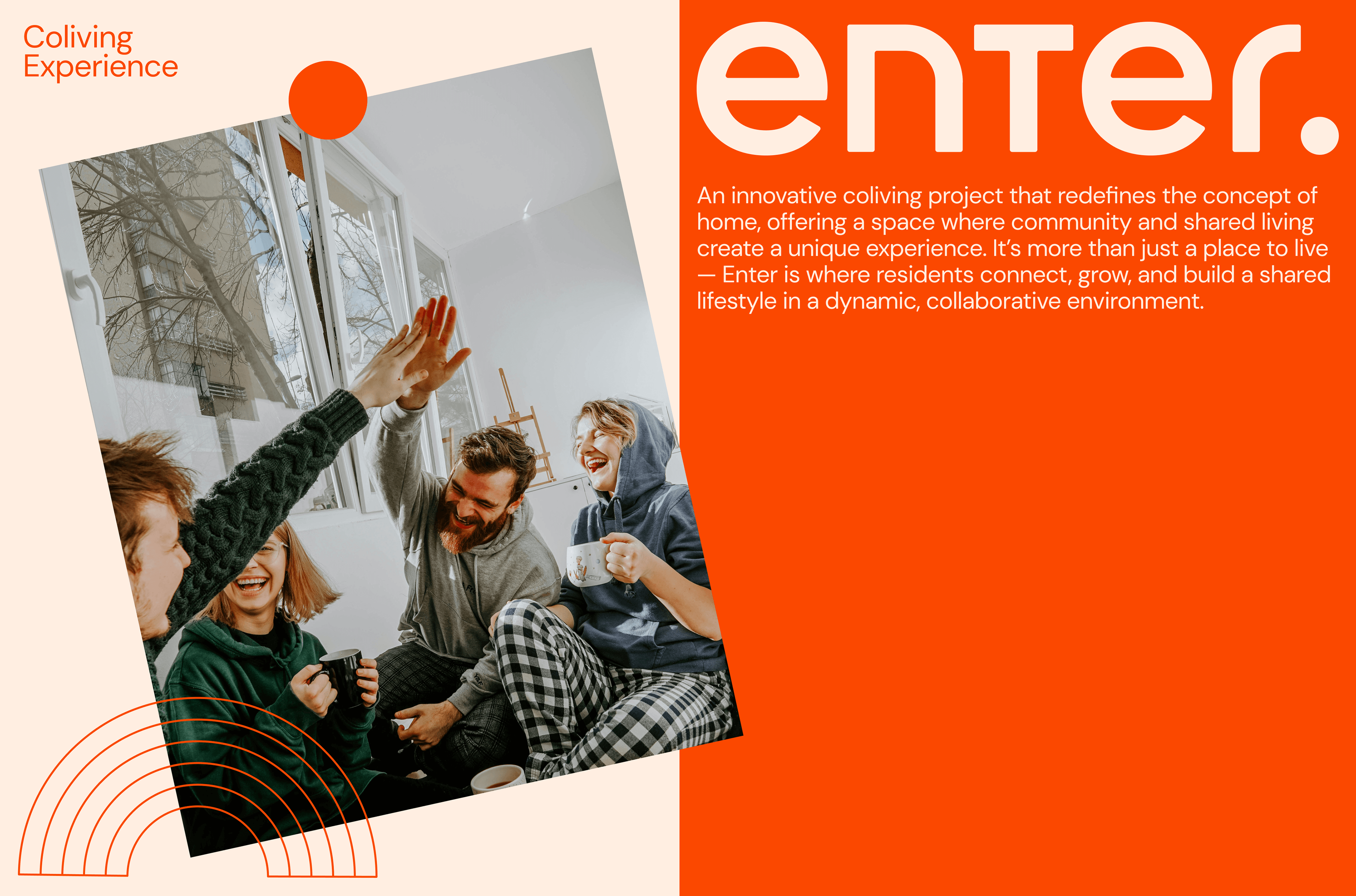 Enter is a coliving project that introduces a new possibility of creating a home—where the dot symbolizes connection, the sticky notes on the wall represent shared ideas, and every interaction builds a sense of community. Here, home is not just a place but a collaborative experience, evolving with each resident.