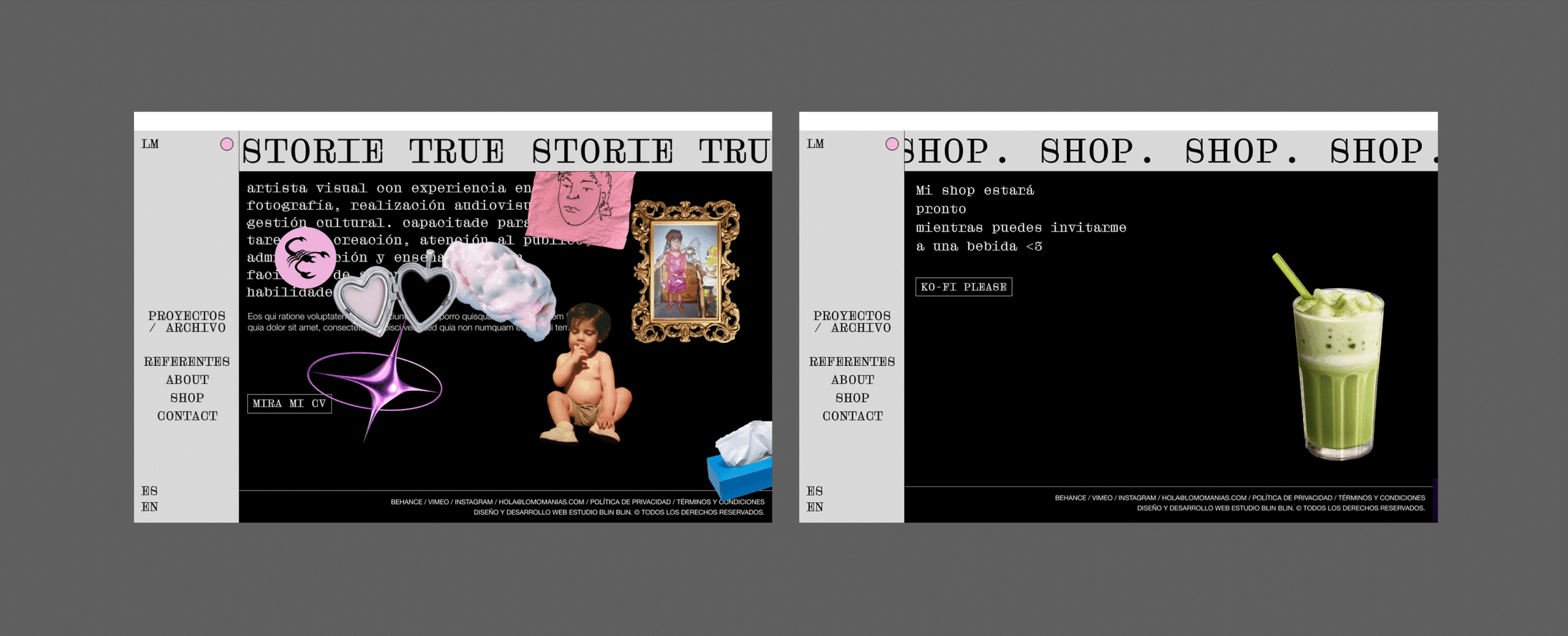 Introduction page featuring a quick compilation of some of the artist’s works, designed to welcome users and provide an immediate sense of their creations upon entering the site.